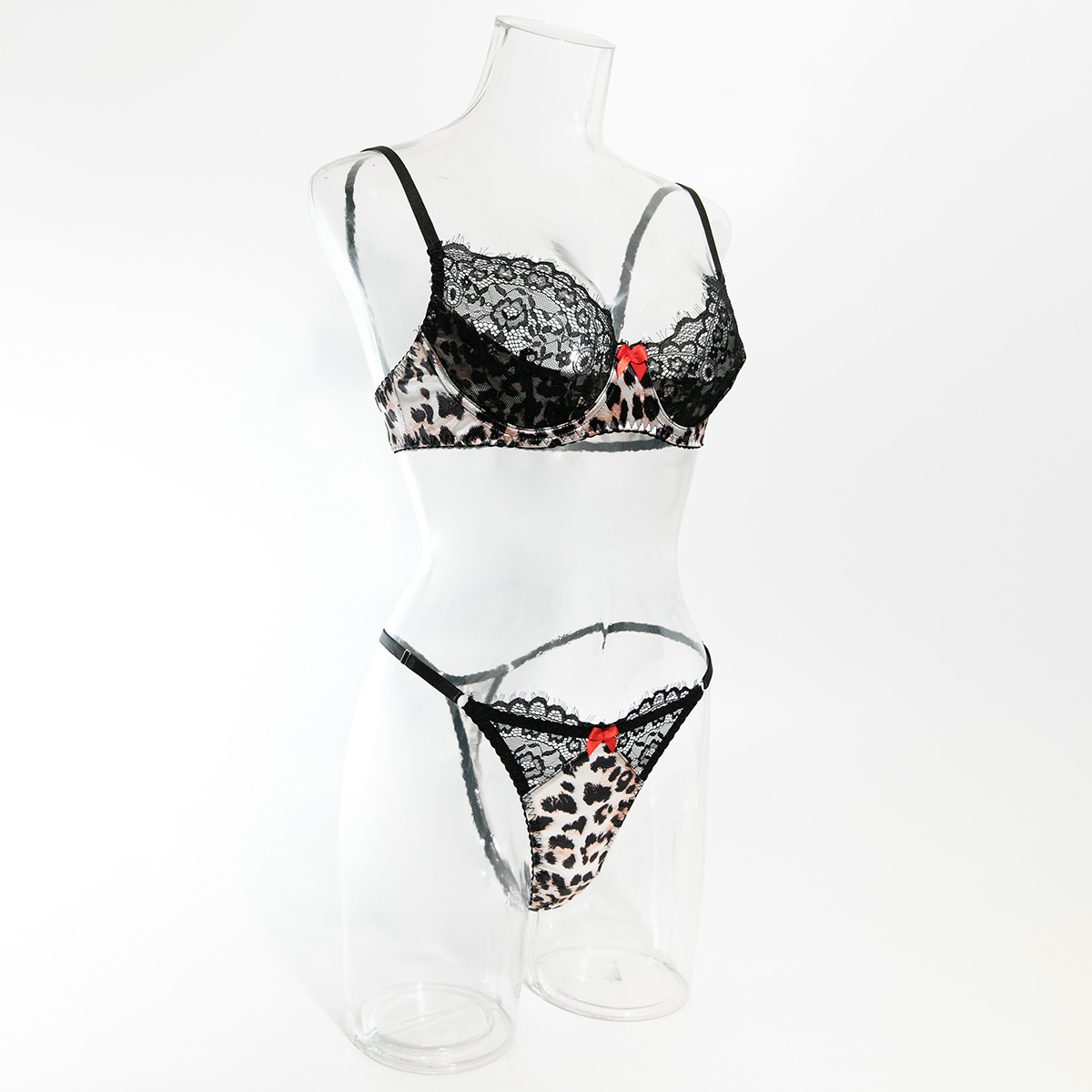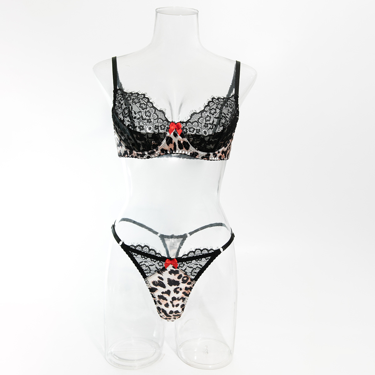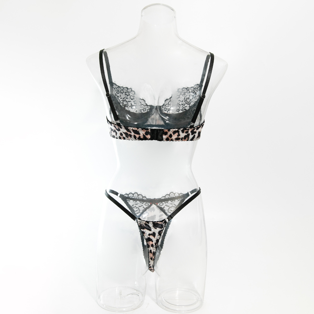 Leopard Pattern Temptation Underwear Lace Stitching Bra Panties Set